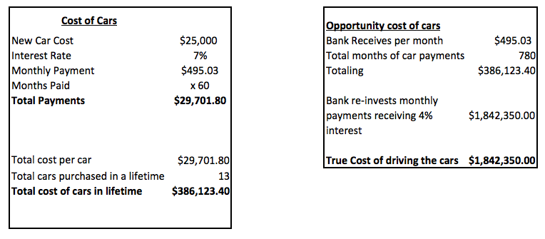 When I look at these numbers it makes me sick to think about how much money someone else is making off of me.  For personal finances, habits are everything.  Falling into a habit of buying a new car every 4 to 5 years could cost you $1,842,350.00 over your lifetime.  Here are a couple of tips.